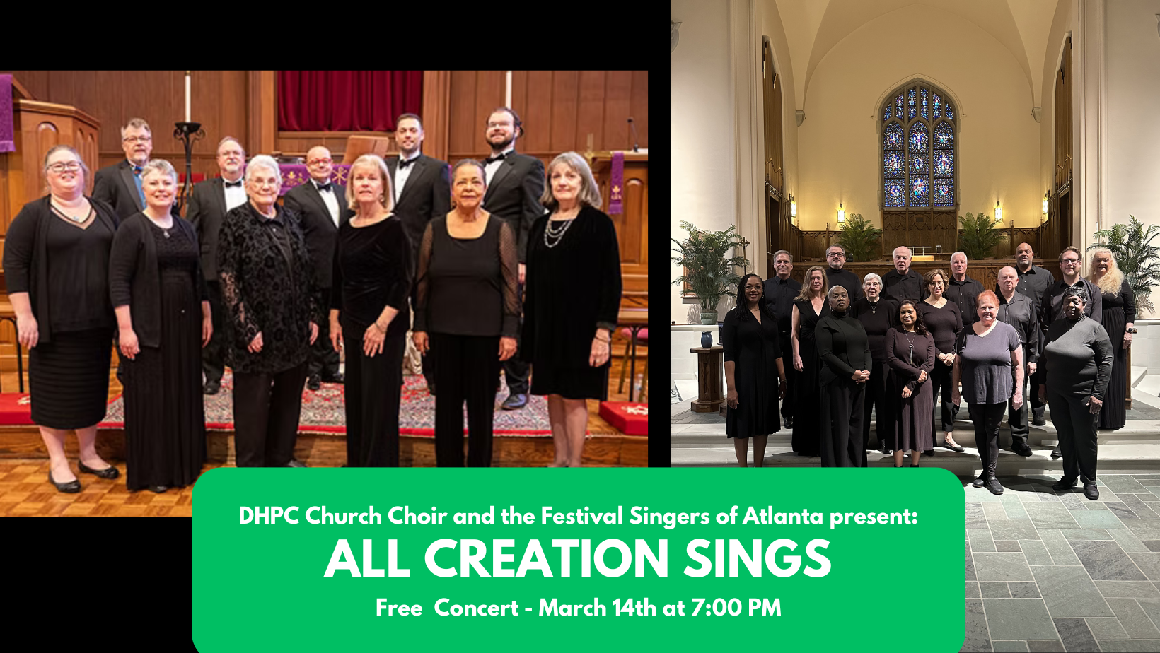 The Druid Hills Presbyterian Church Choir presents selections that invite us to reflect on the majesty of the natural world—mountains, water, sky, and the elements that surround and sustain us. Our featured performers, The Festival Singers of Atlanta, under the direction of Keith H. Walker, offer works inspired by the animal world, capturing movement, character, playfulness, and vibrant energy through music. The organ weaves throughout the program, echoing the breadth and power of the natural world.